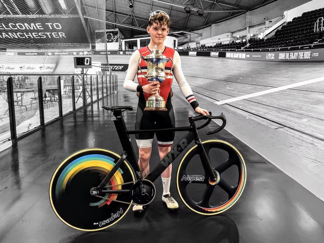 在曼彻斯特周五晚的璀璨星空下,乐璞轮组支持的车手Archie Fletcher凭借其卓越的骑行技巧和不屈不挠的竞技精神,将场地计时赛冠军奖杯收入囊中。